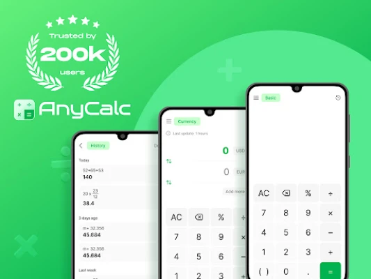 Make your life easier with AnyCalc, the ultimate Calculator for Android. From basic math to advanced equations, currency conversions ๐ฑ to unit switching ๐, this Free calculator app is fast, reliable, and packed with features.