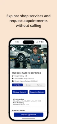 Easily request for estimates from different repair shops for your vehicle needs.