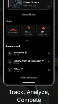 Get rewarded for riding. Who does not love a little friendly competition? Track your stats to earn AMPs, XP, and Badges just for cruising. See where you stand on the global leaderboard and customize your profile with a photo and bio so the community knows who is who.