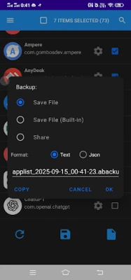 --------------------------------- *** Steps To Backup *** - Select app to backup - Touch save button - Type file name, then select folder.