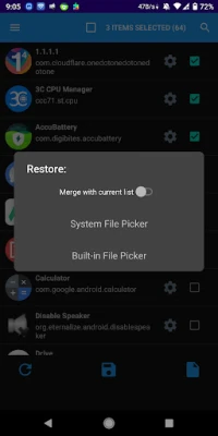 *** Steps To Restore *** - Touch load file button - Select a file picker - Select backup file to load