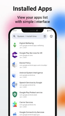 - Sort apps by install time, update time, size, name, screen time, number of opens, network usage