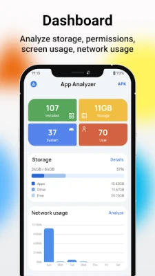 - App Network Data Usage to see the Wifi or data traffic usage of installed apps.