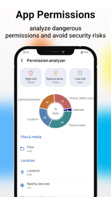 - Analyze app permissions to help you analyze and view dangerous permissions to avoid security risks.