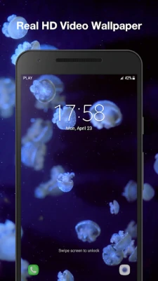 Animated backgrounds with 3d jellyfishes effect , underwater and real ocean. 3d aquarium theme on your home screen or lock screen.
