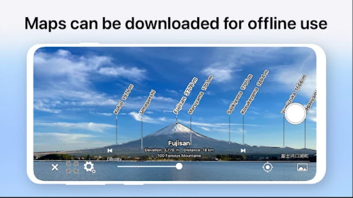■ Even if you tilt the camera, the name is displayed on the mountaintop using 3D coordinates and a gyroscope, so it is easy to check.