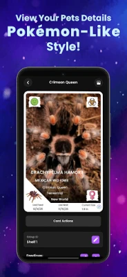 Arachnifiles goes far beyond basic pet tracking. Built with a beautiful, Pokémon-style card system, the app lets you collect, customize, and manage detailed cards for each of your pets in a visually engaging and highly organized way. Whether you keep tarantulas, true spiders, scorpions, mantids, isopods, millipedes, or even non-inverts like reptiles and amphibians, Arachnifiles adapts to your collection.