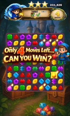Enter a magical world filled with bright gems and exciting challenges. Swap jewels, solve clever puzzles, unlock boosters, and complete levels with beautiful visual effects.