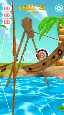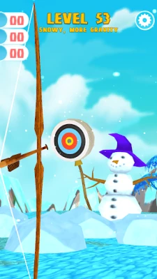 The game has a simple tap and touch-interface, which is specifically designed for mobile devices. Just tap to draw the bow, and drag to aim the arrow. When you are ready to fire, just release your finger. Aim carefully, and consider the environment, because it will affect where the arrows land. The game runs under a physics-engine which takes into account obstacles faced by real archers, such as wind and gravity. Some levels are set in unusual conditions, so the player should take that into account when aiming the trajectory of arrows. Rain and snow will make arrows land sooner. Wind can sway the direction of arrows.