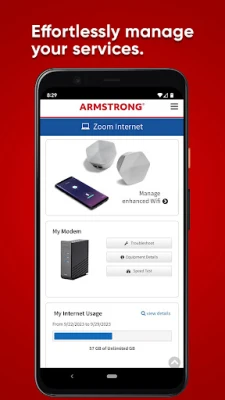 The Armstrong app is an easy-to-use management hub for your Armstrong account and your Zoom internet, Talk and EXP services. Download the Armstrong app today for fast access to your email, make a payment on your account, contact support, sign up for service alerts, listen to your voicemail, view what’s on TV tonight and more. You must have an active Armstrong account to use this app.