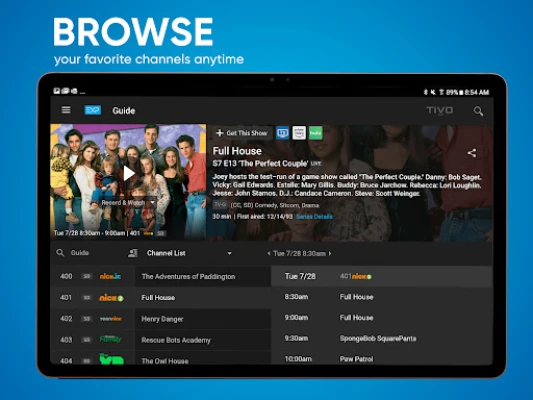 You can easily find shows and schedule recordings, and browse content via the guide, by genre or category, explore the cast and crew, and even see where the content is available to watch.