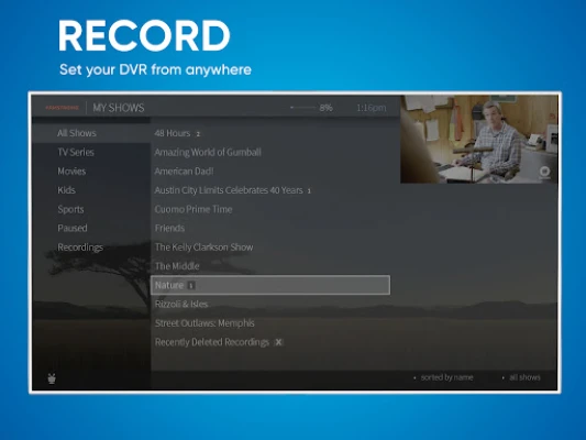 The free ARMSTRONG EXP stream app for Android TV is the ideal entertainment app serving up control, discovery, and a place for viewing live TV, EXP On Demand, and recorded shows.