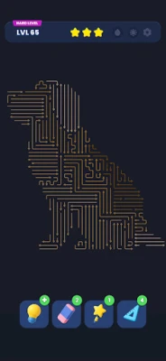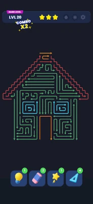 Use Zoom to closely inspect complex paths, Hint to reveal a helpful move, Magic Wand to break through difficult situations, Rubber to erase mistakes, and Grid Scale to adjust the board for better visibility and planning.
