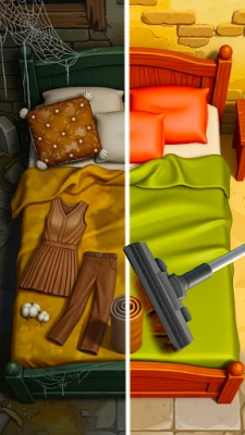 In this ultimate Home cleaning Anti-Stress experience. Begin in the living room, where you'll vacuum the sofa, scrub the dirty kitchen sink, and fix the broken chair. Wipe down the dining table, clean the fridge, and tackle the rusty stove. Pressure wash the patio rugs, then hang fresh curtains for a new look. Don't forget the satisfying details: wash the smaller rugs and focus on fireplace fixing. This therapeutic cleaning journey transforms a cluttered and dusty space into a spotless sanctuary, offering a deeply calming and rewarding sense of accomplishment. Turn your attention to the private quarters, starting with a deep clean of the bathroom. Scrub the bathroom tub, apply shower to remove stains, and disinfect the toilet commode. After a thorough window mirror cleanup, move to the bedroom to decorate. Restore the muddy dressing table with wood polisher and organize the clothes cabinet. For the final touch of tranquility, perform an aquarium fixing, ensuring the glass is crystal clear. This methodical process of eliminating grime and restoring order provides a deeply satisfying and anti-stress experience.