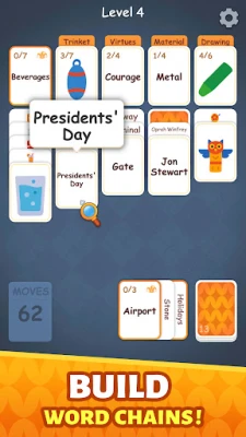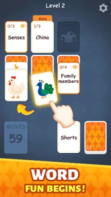 Dive into a rich and multilayered word sort experience of the fun word game where you have two main types of cards - Crown Cards and Regular Cards. Your task is to connect word by strategically dragging these word solitaire cards to categorize words correctly in word solitaire card games, all under a tight limit of moves to finish all word games. Failing to complete the categorization before exhausting your steps results in an exhilarating challenge of the word association game. Can you connect words and classify solitaire associations under pressure? 🤔
