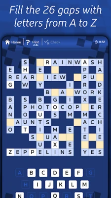 Place all of the letters A to Z into the puzzle to make valid words and complete the grid!