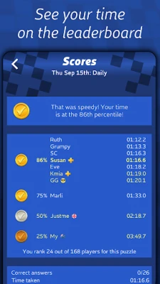 Astraware A-to-Z gives you access to play our free Daily puzzles - top the global leaderboard by completing the puzzle in the fastest time! For an extra challenge there is a Weekender puzzle available each Friday with a trickier grid and more unusual words.