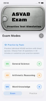 • Real Exam Simulation - Practice with timed tests that mirror the actual ASVAB military exam experience
