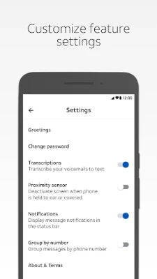 Note: Receiving voicemail on this app does not count against your data rate plan allotment while on the AT&T network. A cellular data or Wi-Fi Calling connection is required; AT&T Visual Voicemail does not work on a Wi-Fi only connection. International data and messaging charges apply to receiving, replying to, and forwarding voicemail messages while roaming internationally. Data and messaging used in replying to and forwarding voicemail messages via SMS, MMS, or e-mail are counted against your data and/or messaging plan, and applicable charges apply if data and/or messaging plan limits are exceeded. Data charges may apply when downloading this application or using text transcription. This app may send a free one-time SMS to AT&T to retrieve mailbox information.