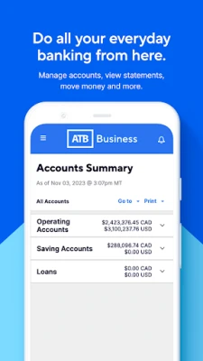 When you select to install the ATB Business app, you’re consenting to any future updates or upgrades. Depending on your device, operating system or user-initiated settings, these might be automatically installed. You’re able to withdraw your consent by uninstalling the ATB Business app from your device.