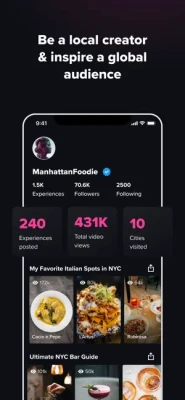 Easily navigate the best dining, nightlife and experiences your city has to offer through short videos. See what's happening now near you and around the globe. Instantly find exactly what you’re looking for by filtering by hashtag, distance, cuisine, feature, price, and more.
