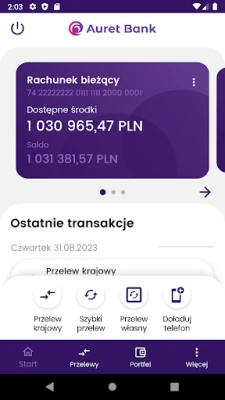 - wykonywanie przelewów krajowych, własnych i doładowań telefonów,