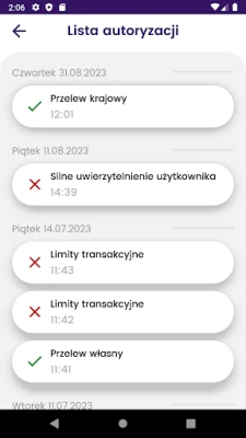 - wyświetlanie szczegółów każdej autoryzowanej operacji (m.in. kwoty operacji, danych odbiorcy przelewu),