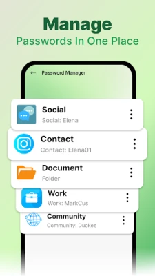 - Secure storage for passwords and login details