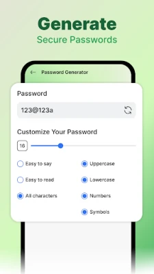 - Built-in password generator to create strong passwords
