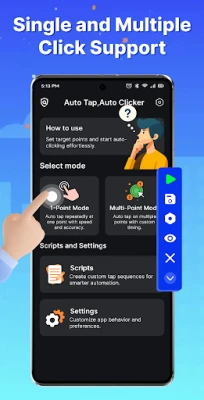 This clicker app gives you full control with easy setup, smooth execution, and an intuitive interface. Set up auto tap sequences with custom delays, repeat counts, and durations. Choose between single tap, multi point, gesture, or multi touch mode. The auto click and tap auto features make your screen interactions fully automated!