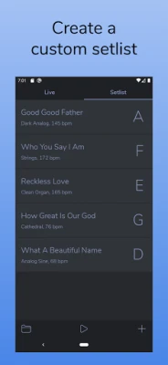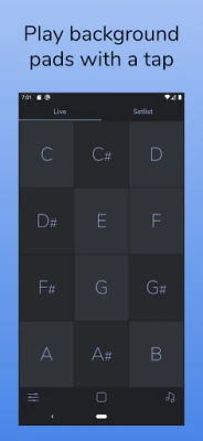 - AutoPad has two modes: LIVE mode gives you instant access to all twelve keys, while SETLIST mode allows you to create a custom list of songs.
