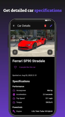 Treat the streets like your personal showroom. Every car you spot gets added to your profile. Track your "Total Spots," earn achievements, and watch your digital garage grow as you find more rare and exotic vehicles.