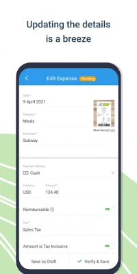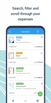 Avaza Expenses is a simple expense tracking app for your team. Create expenses on the go with just a few taps. Snap a photo of your receipt, fill in essential details and you are done. Submit verified expenses for approval right from the app. No more spreadsheets or shoeboxes of receipts to deal with.