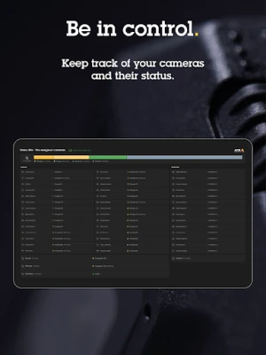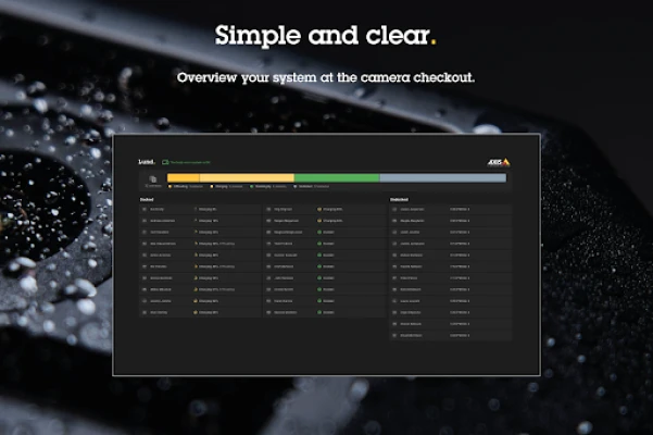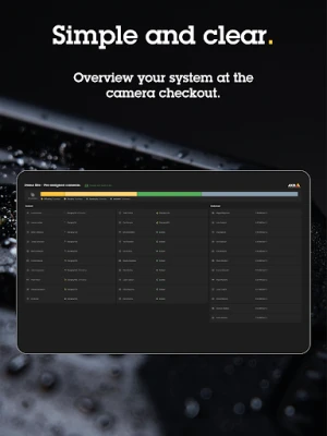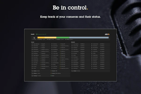 AXIS Body Worn TV Dashboard provides a simplified overview of your body worn system at the camera checkout location. It gives you control, enabling you to monitor your cameras' status with ease. It allows for customization, giving you the ability to select specific parts of your system to display and choose how they're presented. Select your view Select what parts of your system to display and how