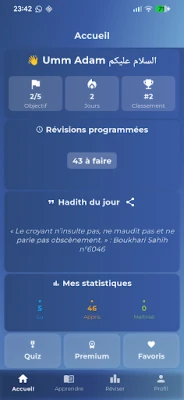 Test your memorization with varied quizzes: multiple choice, fill in the verse, word reordering, guess the next verse. Every test strengthens your Hifz.