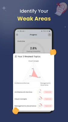 π π Performance Analytics, & Passing Possibility: Analyze your performance over time and monitor your strengths and weaknesses. Additionally, estimate the likelihood of passing the test based on your performance and provide targeted practice to help maximize your chances of passing.