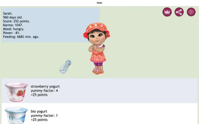 - Earn points by feeding your baby, doing care actions, playing mini-games, and going on egg hunts.