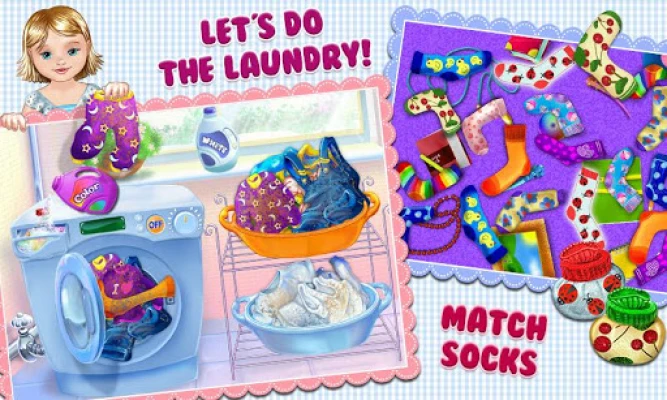 After 7.5 million of you joined in on their previous little adventures, it’s time to head home... but the fun’s never over! In Emma, Sophia, Olivia, and Kim’s 5th adventure it’s time to be a great little helper and run the house! Become an awesome little helper by doing the laundry, matching the socks, hanging the clothes to dry on a windy day with mother, cleaning the TV room and the kid’s room, and even plant flowers that giggle when they’re all grown up! Helping around the house makes it a home, and it’s now so much more fun with these awesome educational games!