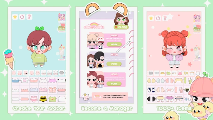 Take care of your idol's career, put it to work and collect coins! Mini games are also a great choice to have fun and collect coins to take care of your Chibi idol.