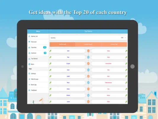 Advanced filtering menu to get only the baby names that YOU love. Sort by gender (unisex / boy / girl names), first / last letter, length of first names, or compound names.