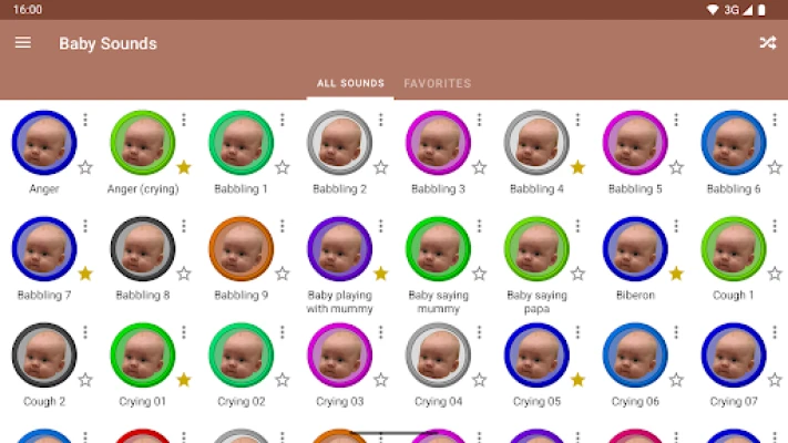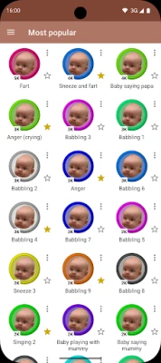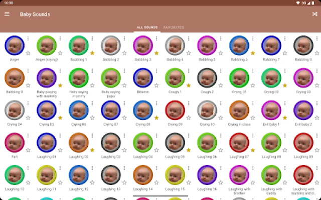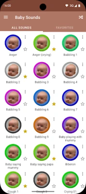 Baby Sounds contains more than 70 different baby sounds so you can listen to them at any time, without a data connection!