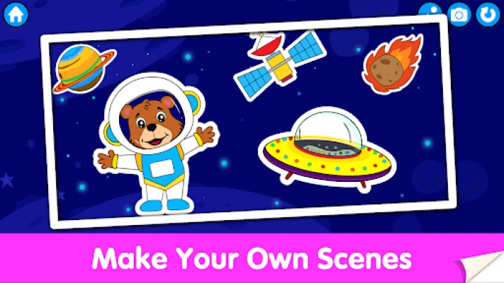 Presenting KidloLand Sticker World, the perfect preschool learning games app for kids and toddlers that will keep them occupied and enhance their mental abilities. It allows kids to build their dream world with colorful and vibrant stickers and turn their imagination into reality.