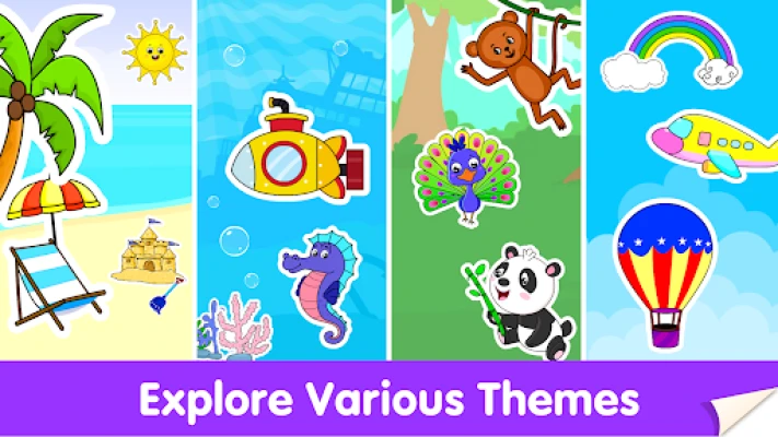Here's a list of all the fun themes kids can explore in Sticker World: