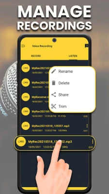 📂 File Management: Store and manage recordings with an intuitive file manager and options to delete or share recordings directly.