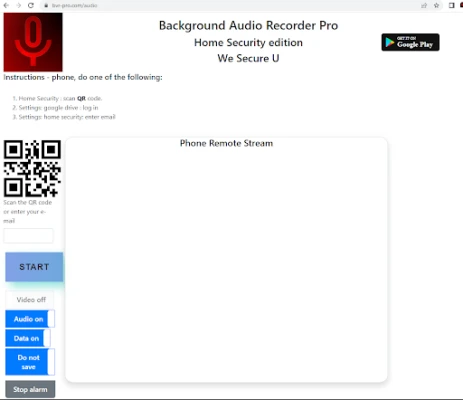new - baby monitor feature: https://bvr-pro.com/baby instructions: 1. scan the qr code. 2. press "start" on website. 3. press "start" on phone.