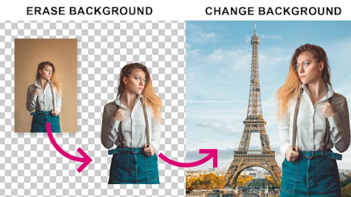 With this app, you can remove the background from any picture, save the transparent image, and add a different background of your choosing in a few seconds. Just select the area to be cut out with tools, or use the AI auto background remover, add a custom background, and share your masterpiece with friends.