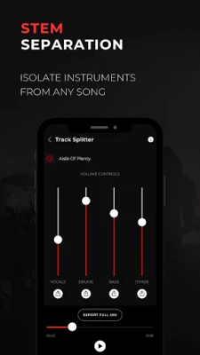 - Track Splitter (stem separation): remove or extract vocals to create a karaoke track of any of your songs. Control the volume of drums, bass and piano using the Track Splitter stems player for FREE.