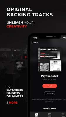 - Backing Tracks (Jam Tracks): play along original tracks of different genres made for you to elevate your soloing skills.
