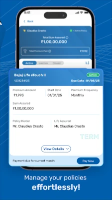 Welcome to Bajaj Life - your all-in-one life insurance app designed to simplify, personalize, and elevate your path to a financially secure future. Whether you're looking to explore life insurance products online, manage your policies effortlessly, or track your ULIP investments, everything you need is now in one seamless mobile app.