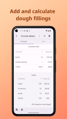 Dough Fillings: add and calculate fillings easily for greater precision in your formulas.